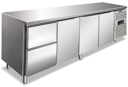 CXF 4110 TN (2X1/2) Tavolo refrigerato quattro ante ventilato. Temperatura normale. Versione con 1 Cassettiera refrigerata da N.2 Cassetti da 1/2 -2°/8°