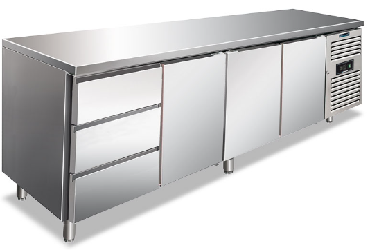 CXF 4130 TN (3x1/3) Tavolo refrigerato quattro ante ventilato. Temperatura normale. Versione con 1 Cassettiera refrigerata da N.3 Cassetti da 1/3 -2°/8°