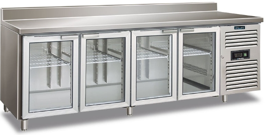 CXF 4200 TNG CON ALZATINA Tavolo refrigerato quattro ante con alzatina, porte vetro ventilato. Temperatura normale -2°/8°