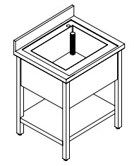 LAVELLO 1 VASCA CON RIPIANO CARATTERISTICHE » Struttura in acciaio inox AISI 304 18/10 scotch brite anticorrosione e antitaglio; » Gambe con tubolare quadro 40x40 scotch brite con piedini regolabili; » Top con alzatina paraspruzzi con vasca inclinata verso lo scarico; » Vasca con fondo insonorizzato; » Dotazione standard: piletta di scarico e troppopieno; » A richiesta: rubinetteria; » Ante con chiusura a scorrevoli o a battente; » Bordo piano mm 40; » Per elementi con alzatina posteriore, le gambe sono rientranti di mm 50