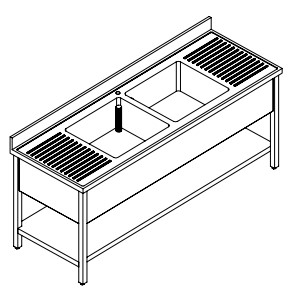 LAVELLO 2 VASCHE CON 2 BASI D'APPOGGIO E RIPIANO