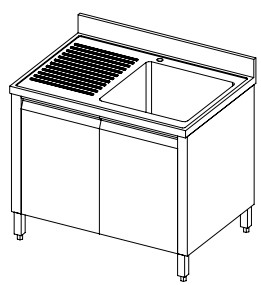 LAVELLO ARMADIATO BATTENTE 1 VASCA CON BASE D’APPOGGIO SX