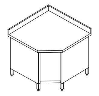 TAVOLO ANGOLARE ARMADIATO CON ALZATINA SENZA RIPIANO INTERMEDIO CARATTERISTICHE » Struttura in acciaio inox AISI 304 18/10 scotch brite anticorrosione e antitaglio; » Gambe con tubolare quadro 40x40 con piedini regolabili; » Accessori a richiesta: cassetti, cassettiera, alzatine speciali, ruote etc.; » Piano di lavoro in acciaio inox con angoli saldati; » Alzatina standard completamente saldata; » Ripiano intermedio in acciaio inox con omega di rinforzo; » Bordo piano mm 40; » Guide per cassetto standard; » Per elementi con alzatina posteriore, le gambe sono rientranti di mm 50.