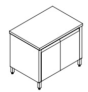 Tavolo armadiato battente senza alzatina CARATTERISTICHE » Struttura in acciaio inox AISI 304 18/10 scotch brite anticorrosione e antitaglio; » Gambe con tubolare quadro 40x40 con piedini regolabili; » Accessori a richiesta: cassetti, cassettiera, alzatine speciali, ruote etc.; » Piano di lavoro in acciaio inox con angoli saldati; » Alzatina standard completamente saldata; » Ripiano intermedio in acciaio inox con omega di rinforzo; » Bordo piano mm 40; » Guide per cassetto standard; » Per elementi con alzatina posteriore, le gambe sono rientranti di mm 50