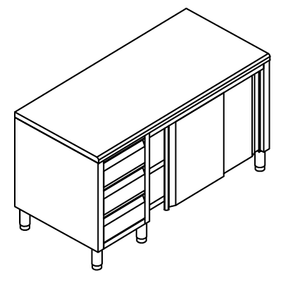 » Accessori a richiesta: cassetti, cassettiera, alzatine speciali, ruote etc.;
