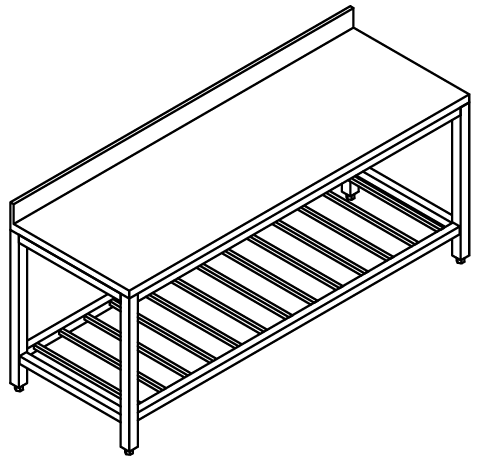» Piano di lavoro in acciaio inox scotch brite spessore 15/10 bordo 60 mm;