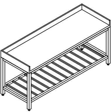 Tavolo giorno piano in polietilene 3 alzatine e ripiano dogato CARATTERISTICHE » Struttura in acciaio inox AISI 304 18/10 scotch brite anticorrosione e antitaglio; » Gambe con tubolare quadro 50x50 con piedini regolabili; » Piano di lavoro in acciaio inox scotch brite spessore 15/10 bordo 60 mm; » Finitura scotch brite con angoli saldati e piano di lavoro tamburato; » Alzatina standard con spessore 20 mm e 100 mm di altezza completamente saldata; » Ripiano intermedio saldato in acciaio inox con omega di rinforzo; » Accessori a richiesta: cassetti, cassettiera, alzatine speciali, ruote etc.; » Per realizzazione in acciaio inox AISI 316 aumento del +40%.