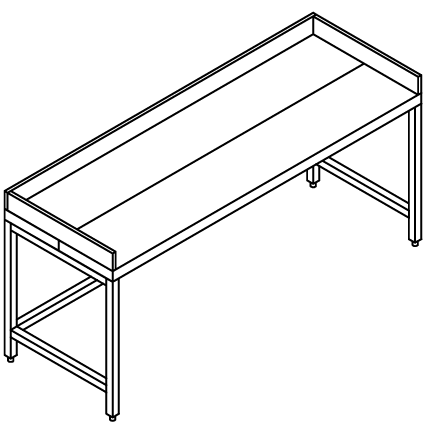 » Piano di lavoro in acciaio inox scotch brite spessore 15/10 bordo 60 mm;
