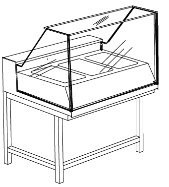 VETRINA CALDA BAGNO MARIA VETRI DRITTI ALTI CARATTERISTICHE » Vetrine per gastronomia costruiti in acciaio inox AISI 304. Le vetrine per la vendita del prodotto sono attrezzate con tecnologia: freddo statico, con evaporatore posteriore ed unità condensatrice collegata o remota; freddo ventilato, con evaporatore, ventole ed unità condensatrice collegata o remota; caldo secco, con piano in acciaio inox riscaldato da resisitenze (per mantenimento); caldo bagno maria, con vasca e resitenze per il riscaldamento dell'acqua. Completa la gamma una vetrina neutra per la vendita del pane attrezzata con piano in legno asolato per briciole e foro centrale per la raccolta. Il castello vetri costruito con vetri temperati, puo' essere con vetri diritti o vetri curvi; all'interno puo' essere inserita una mensola di servizio in vetro neutra o riscaldata. Le vetrine sono chiuse posteriormente con plexyglass scorrevoli. Le composizioni possono essere richieste grezze o con rivestimento a scelta
