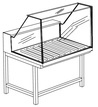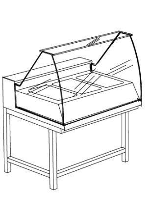 Vetrina gastronomia vetri alti dritti CARATTERISTICHE » Vetrine per gastronomia costruiti in acciaio inox AISI 304. Le vetrine per la vendita del prodotto sono attrezzate con tecnologia: freddo statico, con evaporatore posteriore ed unità condensatrice collegata o remota; freddo ventilato, con evaporatore, ventole ed unità condensatrice collegata o remota; caldo secco, con piano in acciaio inox riscaldato da resisitenze (per mantenimento); caldo bagno maria, con vasca e resitenze per il riscaldamento dell'acqua. Completa la gamma una vetrina neutra per la vendita del pane attrezzata con piano in legno asolato per briciole e foro centrale per la raccolta. Il castello vetri costruito con vetri temperati, puo' essere con vetri diritti o vetri curvi; all'interno puo' essere inserita una mensola di servizio in vetro neutra o riscaldata. Le vetrine sono chiuse posteriormente con plexyglass scorrevoli. Le composizioni possono essere richieste grezze o con rivestimento a scelta.